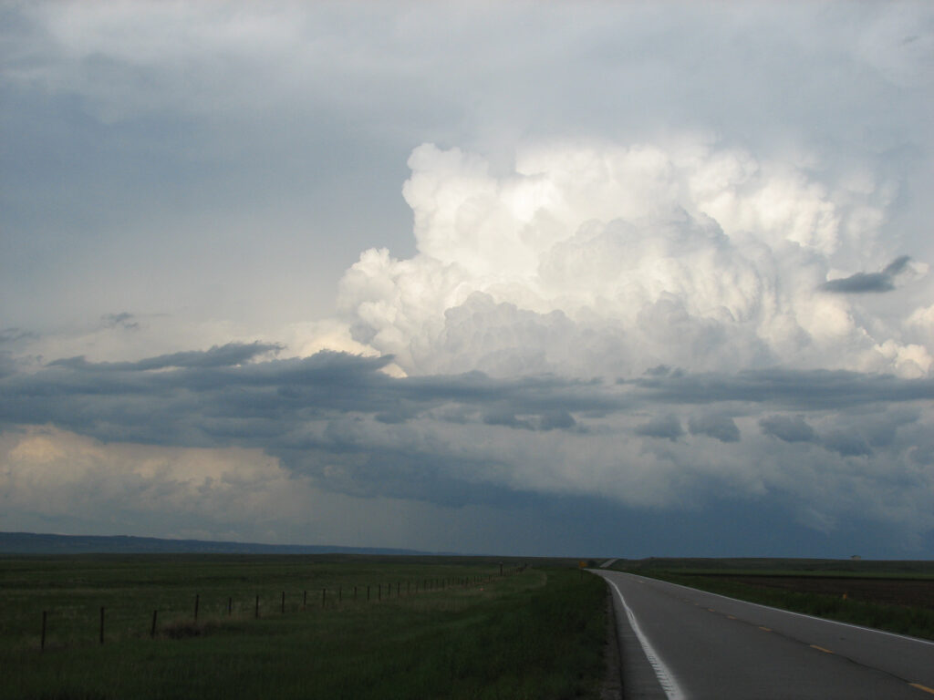 After the tornado lifted, we observed the cell and then decided to drive a bit closer. We got into a good position for the supercell to go north of us, while we observed beautiful structure and more cells popping up. None of them really ended up going, though, and we watched the cell move from northwest to northeast of us, dropping another beautiful funnel fairly close to us. That one didn’t manage to touch down, though.