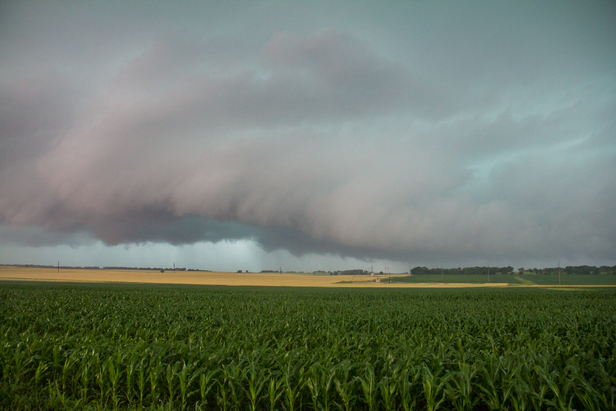 The next 2 hours was spent staying in the hook of the storm. The roads were less than ideal. The storm had some impressive wall cloud formations and wrap-ups, but no tornado.