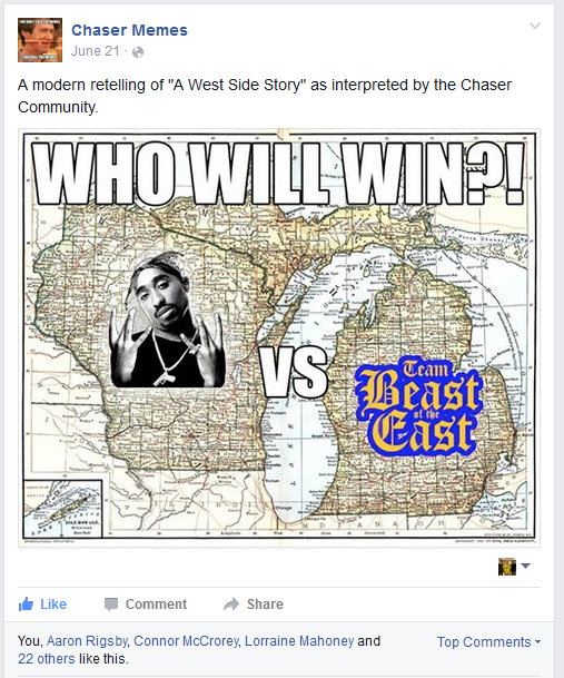 After much debate, I finally fell for the stupid hype and left Peoria on Sunday and drove to my parents house in Lansing, MI. I was thinking there would be a good chance of storms in Michigan from a northwest flow event. We arrived in Lansing and hung out. Bart made an east vs west meme, as there were positives to targeting on both sides of the lake. Will the tornadoes be in Michigan or Wisconsin? That was the question.