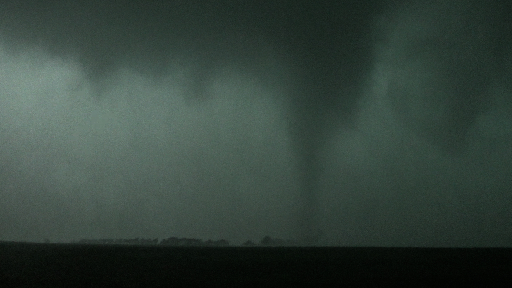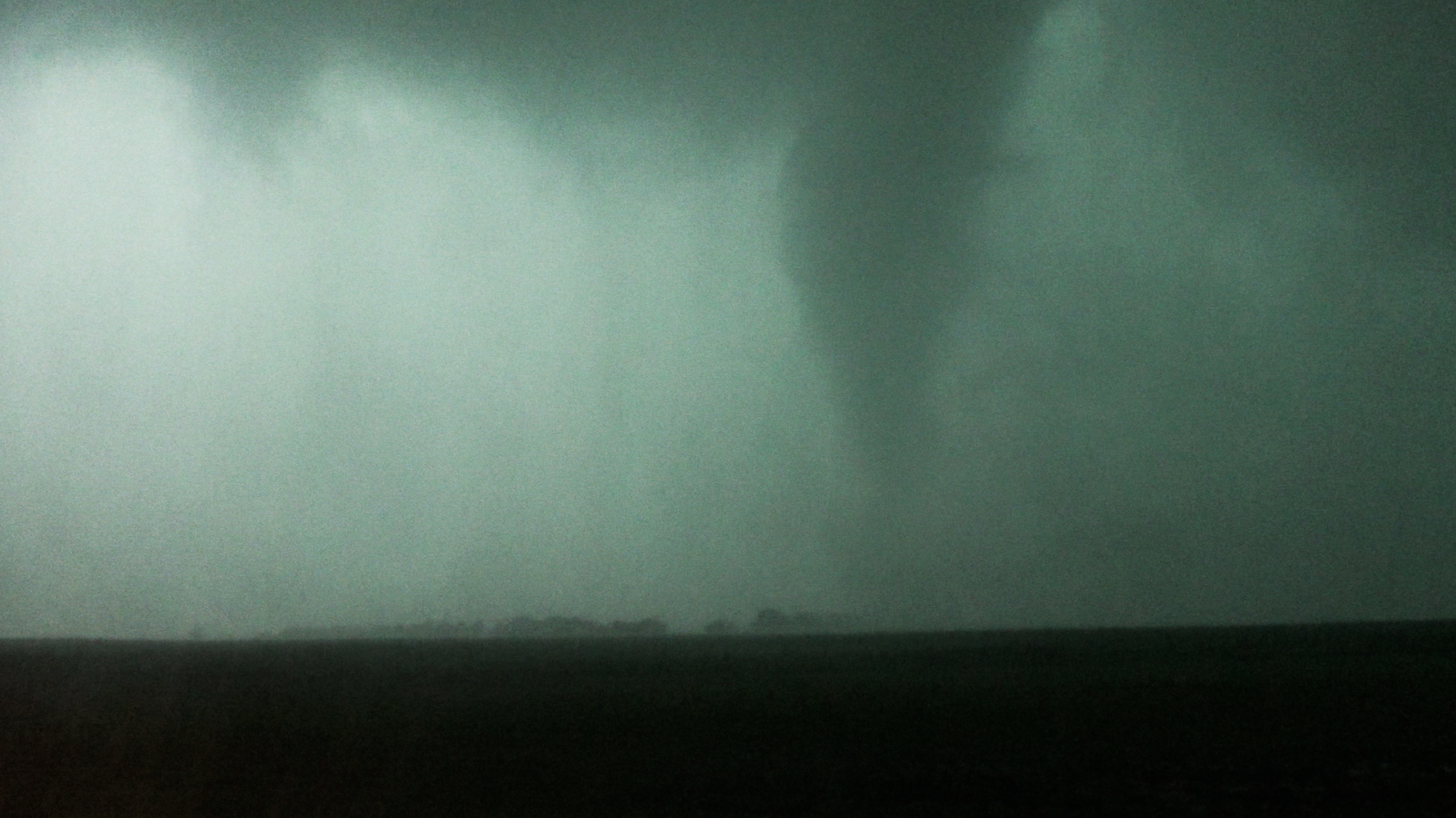 As we continued south and east, we observed a tornado and let it cross the road right next to us. We continued south on a road until we got stopped by downed power lines and had to turn around.