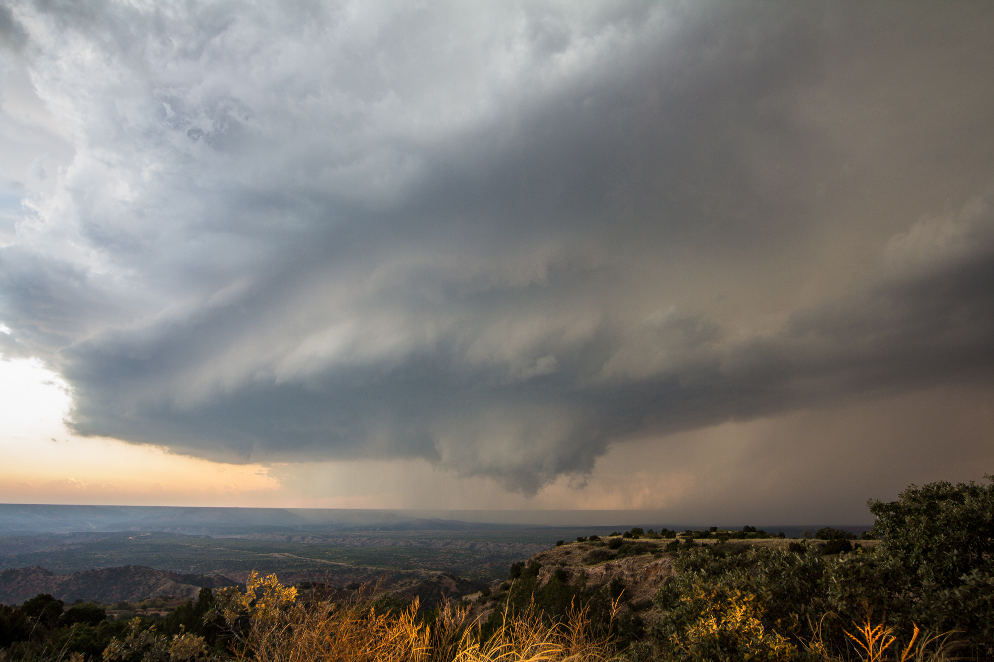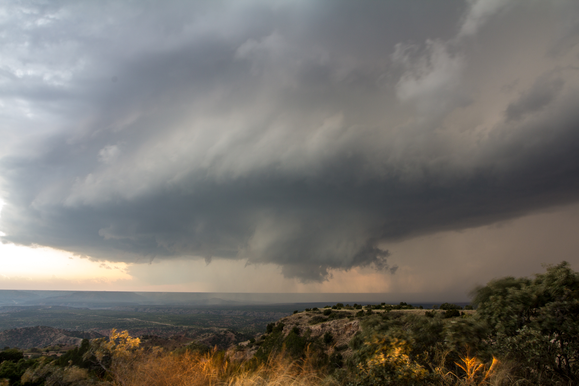 We dropped south on TX Highway 207 from Groom to Claude to the north rim of the Palo Duro Canyon. The storm coming out of Tulia had some epic structure. The north rim gave us a great view of the supercell as it moved towards us. As we watched, the storm became tornado warned.