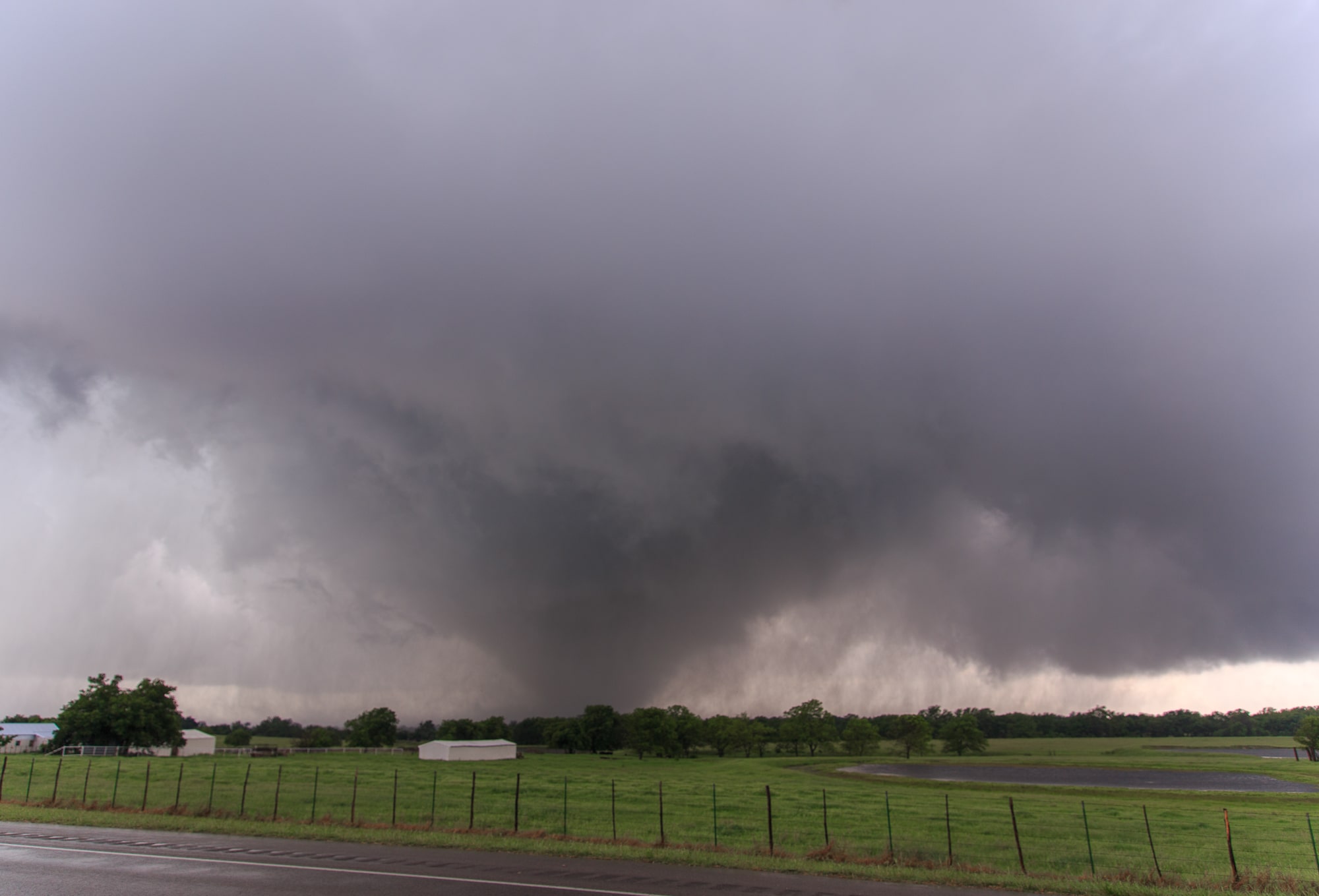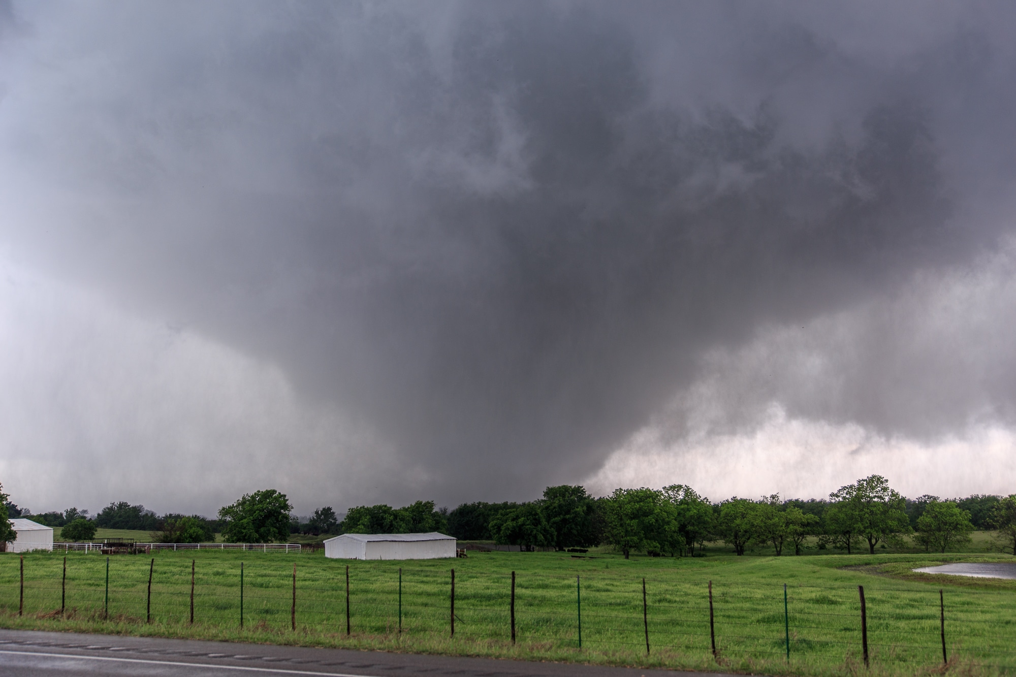 We took the Sulphur by-pass to US-177 and then north. We crossed in front of a huge wedge tornado under one of the most beautifully sculpted supercells I have ever seen. Jari and I setup for video and stills just north of the track.
