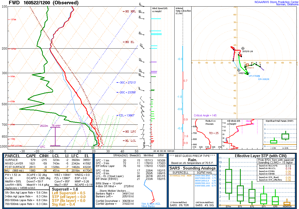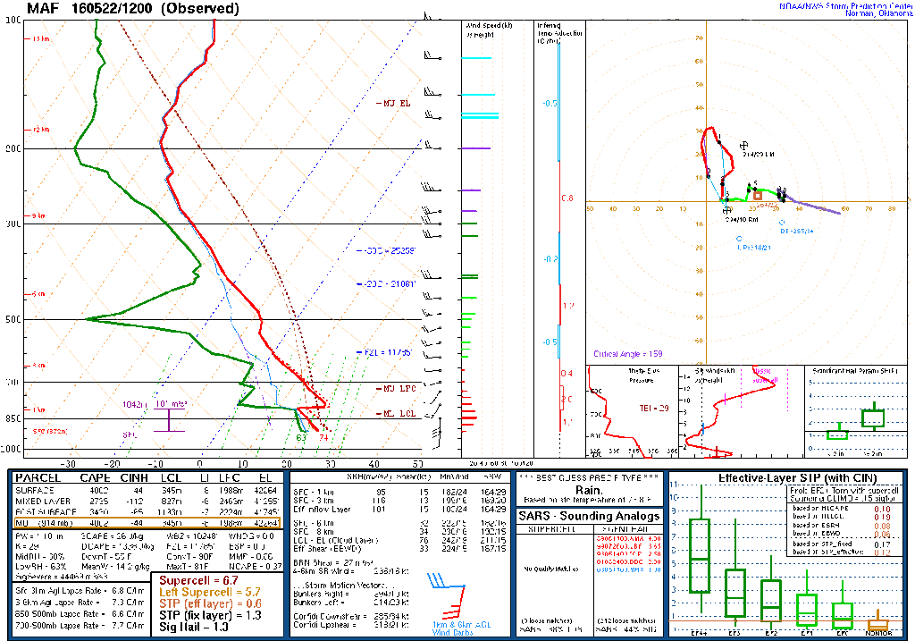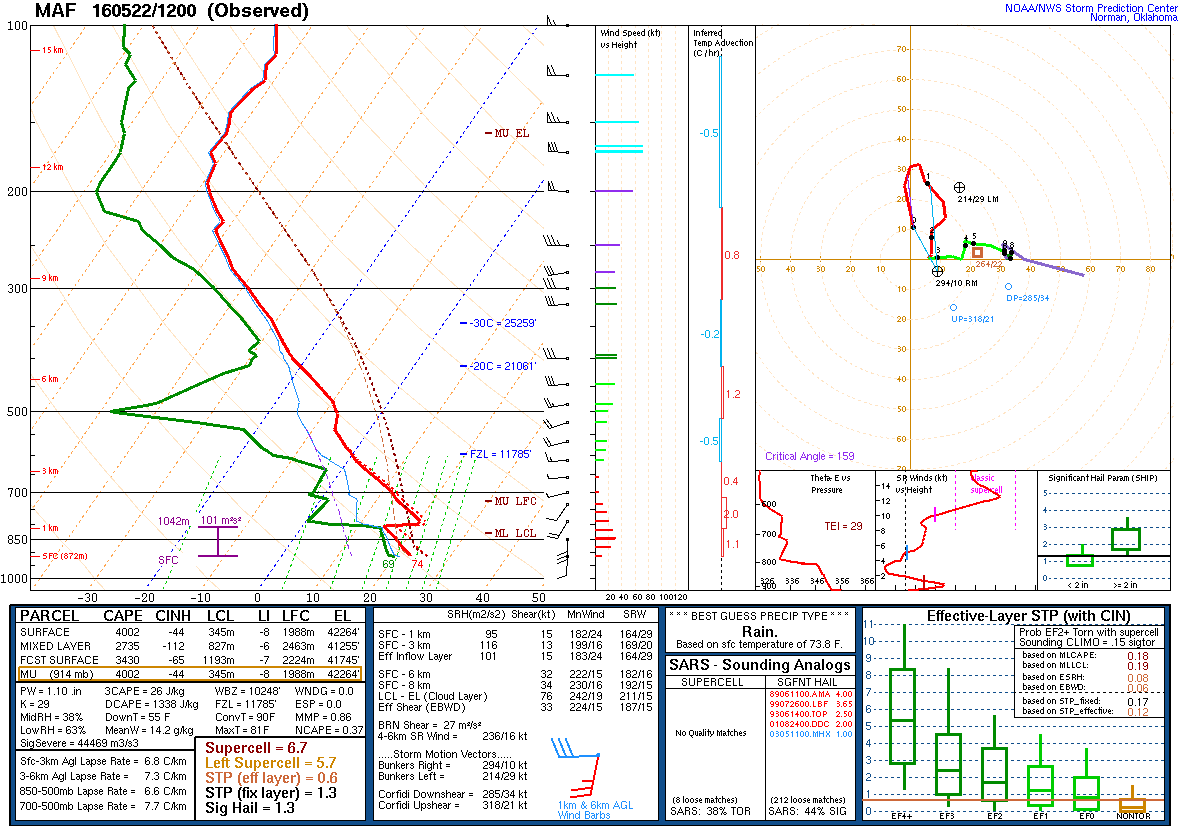 The Dairy Queen had no ice cream(what the heck?), so we ended up sitting around at Sonic. Storms tried firing all around us. Eventually, storms fired to our southwest off of the dryline. I figured this would be the storm to be on. I lost data once I got to Gail, but visually the updraft was quite stout.