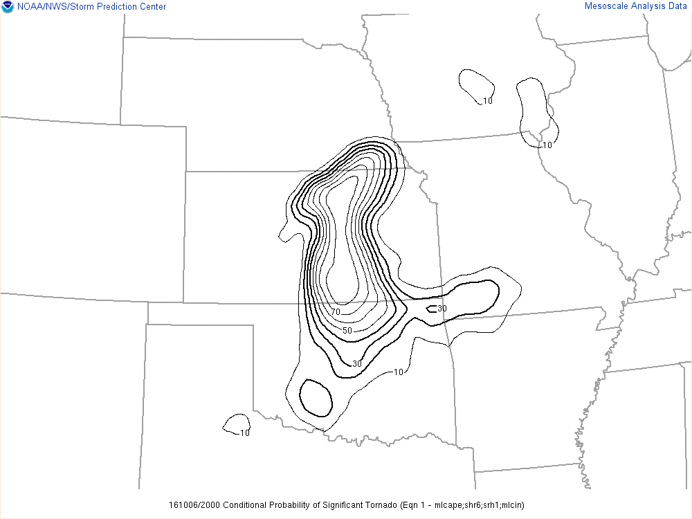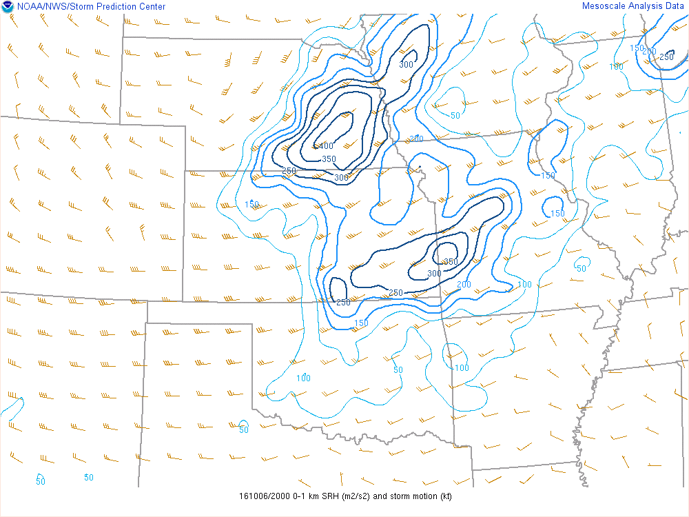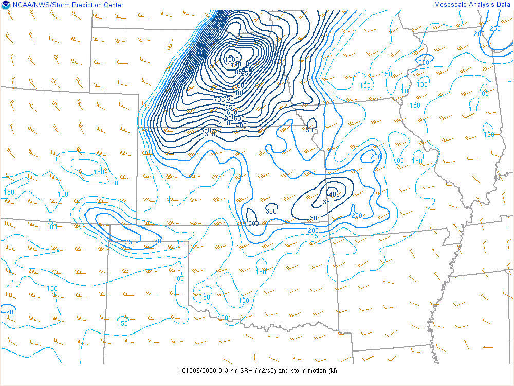 This was definitely a sleeper day, but by 10am it seemed like ingredients were coming into place for a possible significant tornado day. Dewpoints were well into the 70s in Oklahoma and even into Kansas, with good moisture depth on 12Z soundings. 0-1 SRH was showing near 250 over southern Kansas with effective shear of 55-60 knots. MLCAPE was showing almost 3000 J/KG. A nice outflow boundary had been spit out from morning convection.