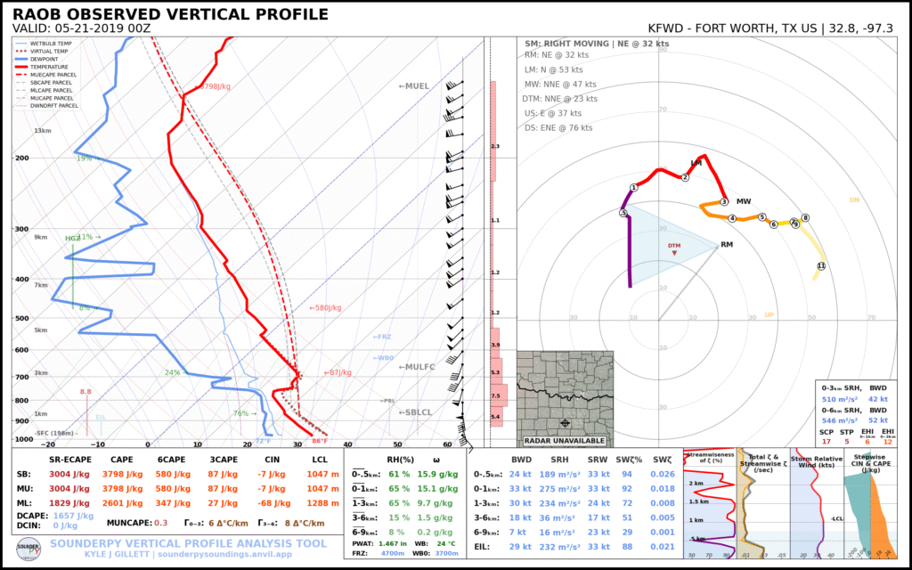 Monday the 20th was a day that stuck out to me multiple days in advance as a really great day in Oklahoma. Classic Oklahoma outbreak type day, with large CAPE, extremely high shear values and SRH that was in the 400-500 range 0-1km. Even at 200+ hours out, the GFS nailed this setup.