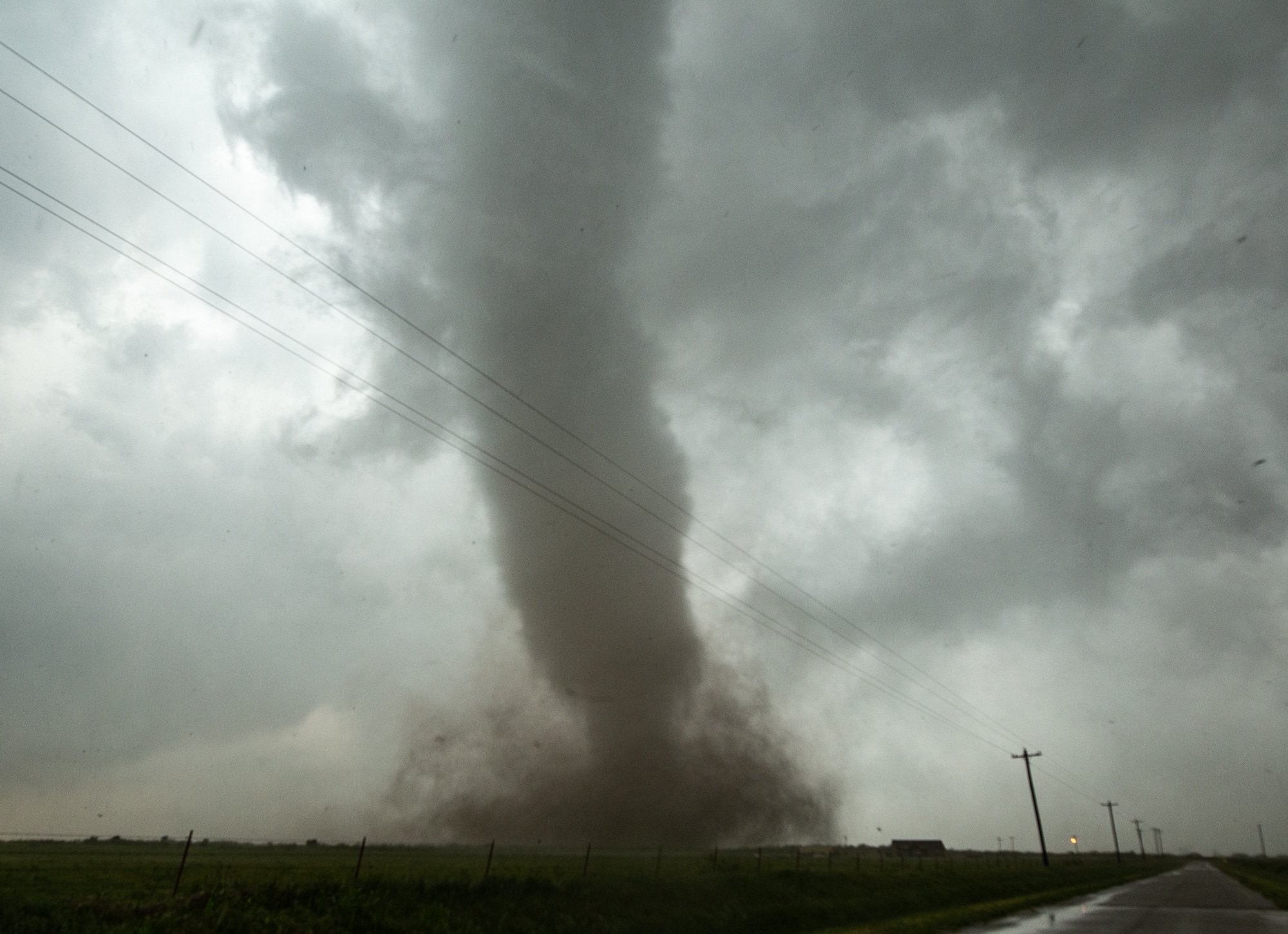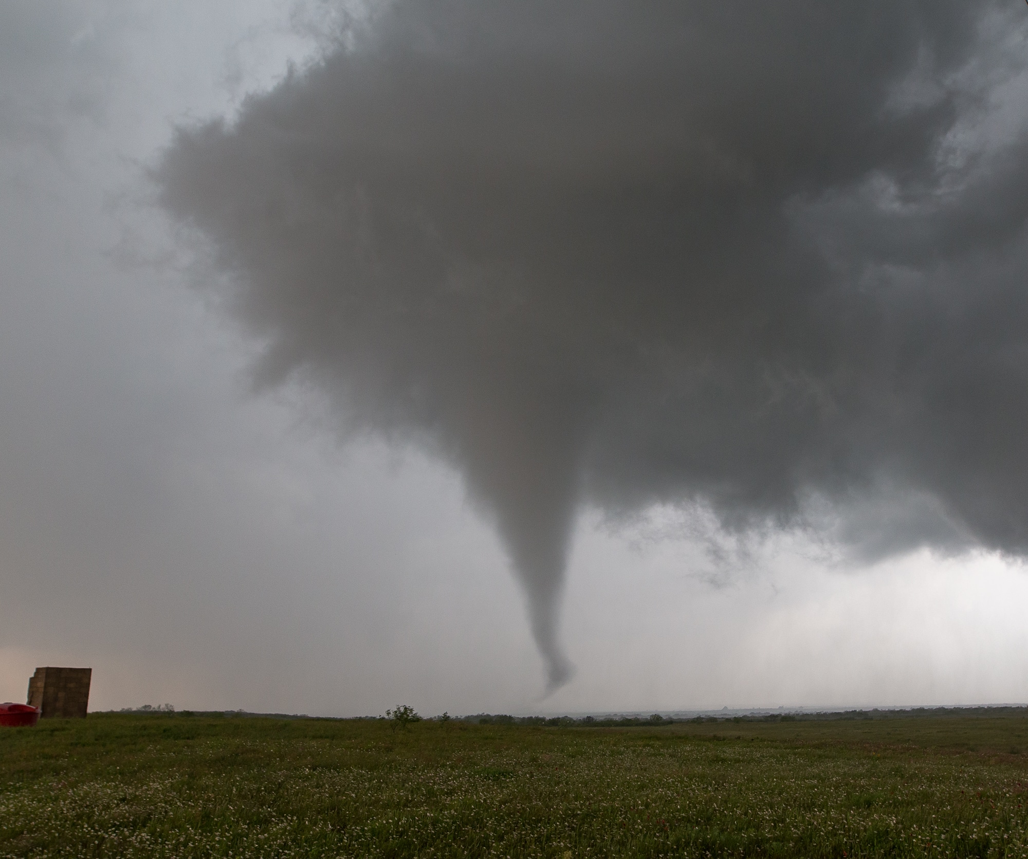 I got a great view of the base as we approached Mangum, and I could tell it was in the process of wrapping up. The RFD was cutting in, so we dropped south of Mangum on OK-34. We took the first west paved option south of the Salt Fork of the Red River. I pulled up pretty close to the base and pulled off with no real traffic around me. There was only time to take a quick leak before the storm started to really wrap up. The funnel appeared and it lowered down in a hurry. I could feel the frustration of 2 years without a tornado leaving me as it touched down!
