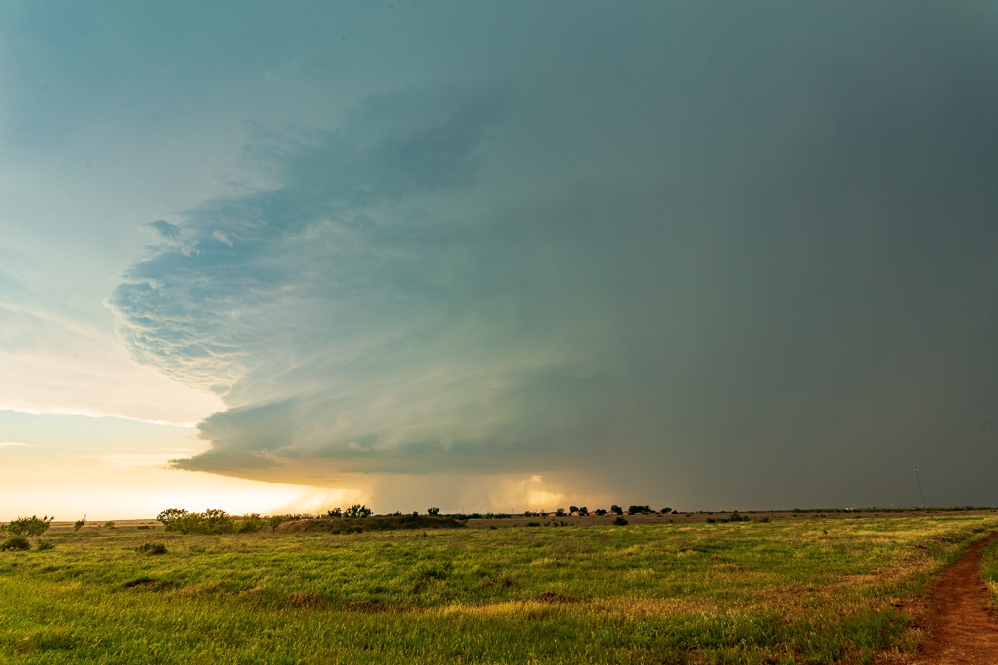 I took off down I-44 to 62 to 183 in Snyder. Reports were coming in near Hollis and down to Quanah of chasers losing their windows with baseball sized hail. While I love some big hail, I decided I wanted to keep my new car out of the hail today and focus on the structure.