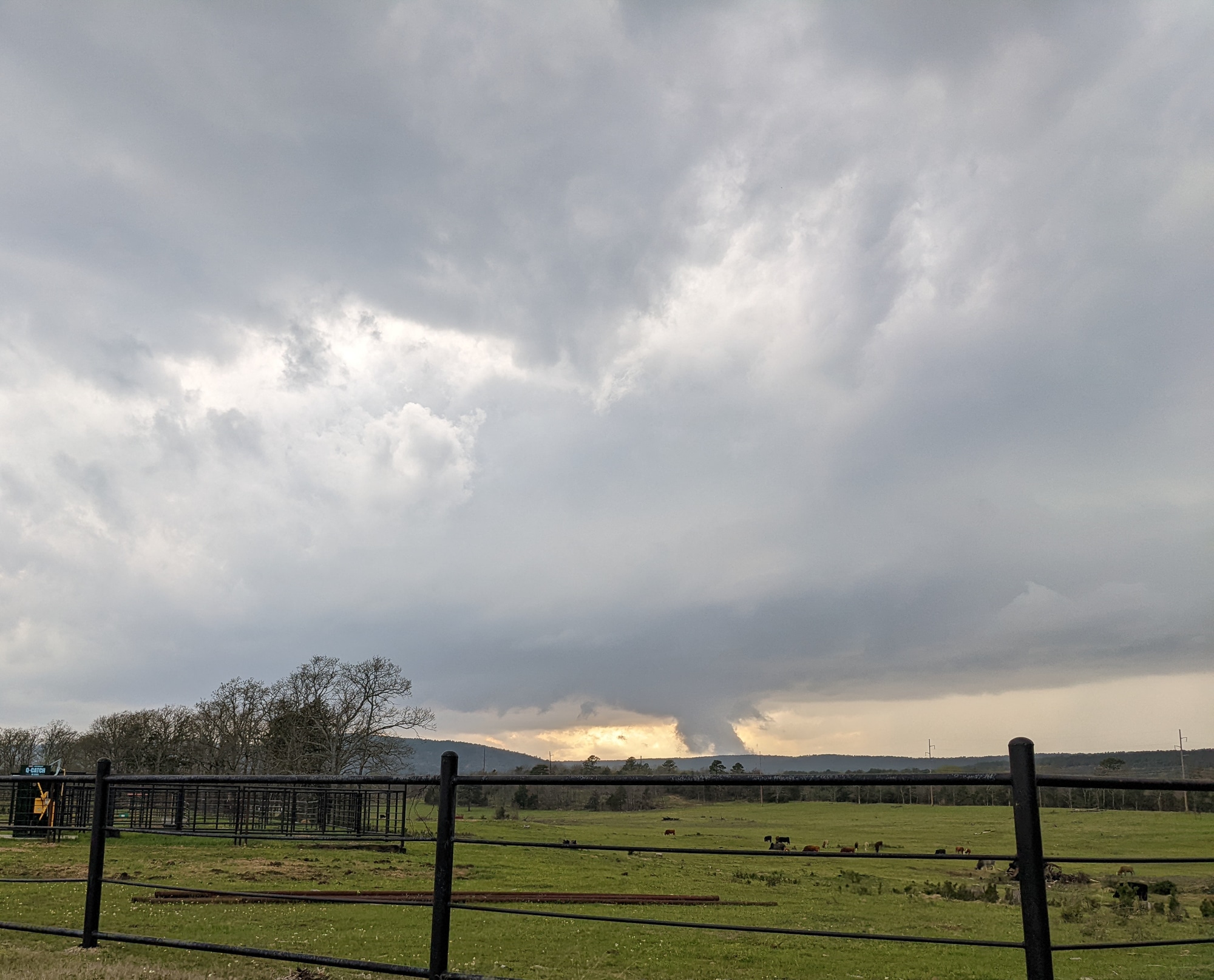 A couple of hours later I was sitting in Antlers watching a storm become tornado warned with tornado reports coming in near Fort Smith. I assumed I had busted, but as luck would have it, a storm would fire to my northwest. I had positioned so that I could get north on US271 towards Clayton, which is where I had to head. The warm front was sitting just north of me, and a storm started firing. This would end up being the storm I spent the rest of the evening on.