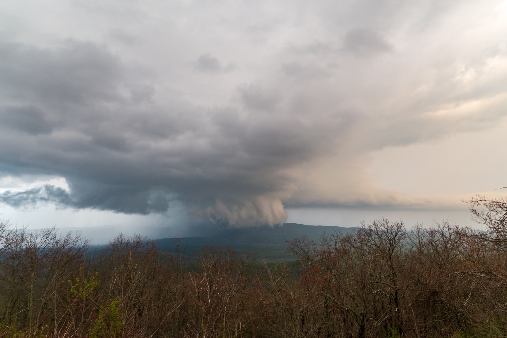 I seemed to be the first one up top, sitting at the first north facing turnout alone for awhile. The storm was still off to the west too far to observe well. Slowly it moved into view.