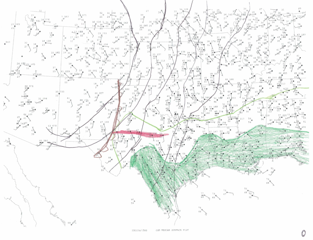 Unseasonable moisture had come ashore and northbound, with 60 degree dewpoints sitting on the red river. A very strong system had come ashore in California the previous day and was moving into the Texas Panhandle. The forecast soundings were showing some incredible shear values. Storm Motions were showing 50-60 knots as well. This would be a pretty challenging chase, however, it was a Sunday in February.