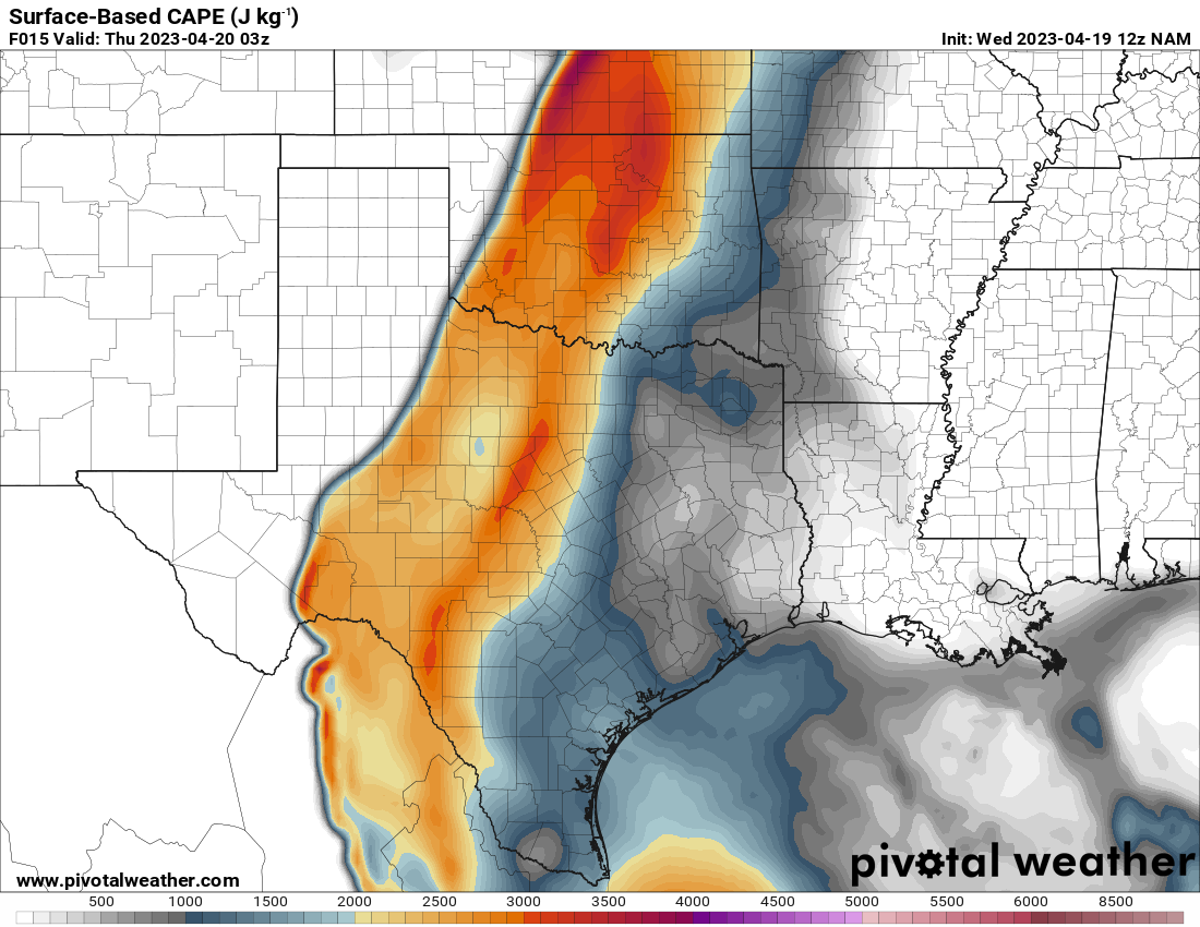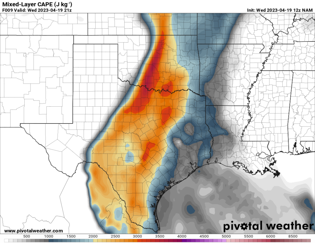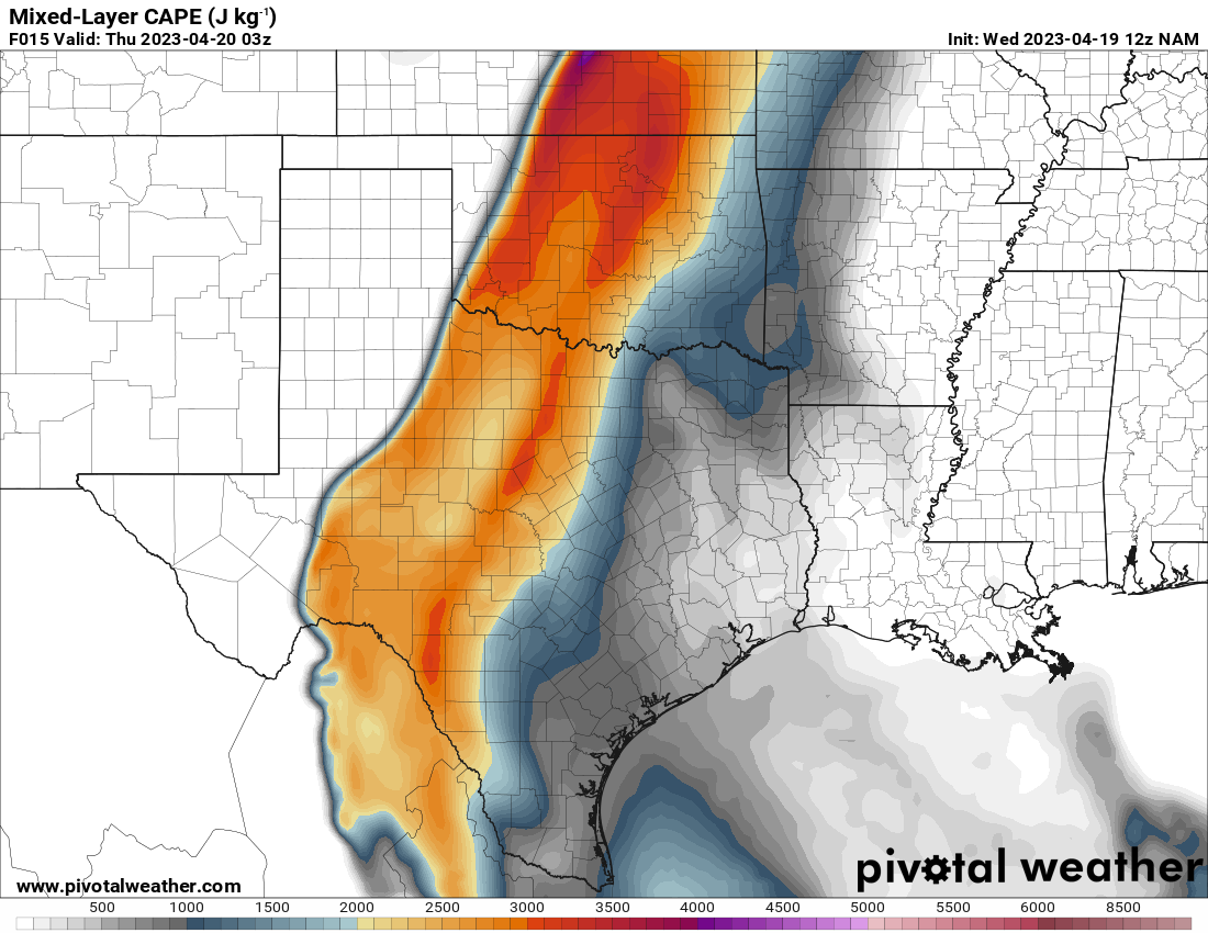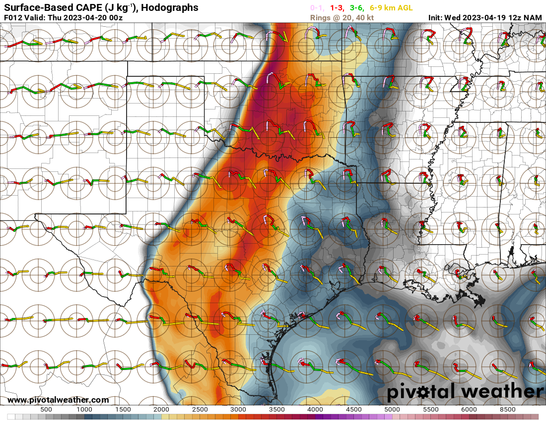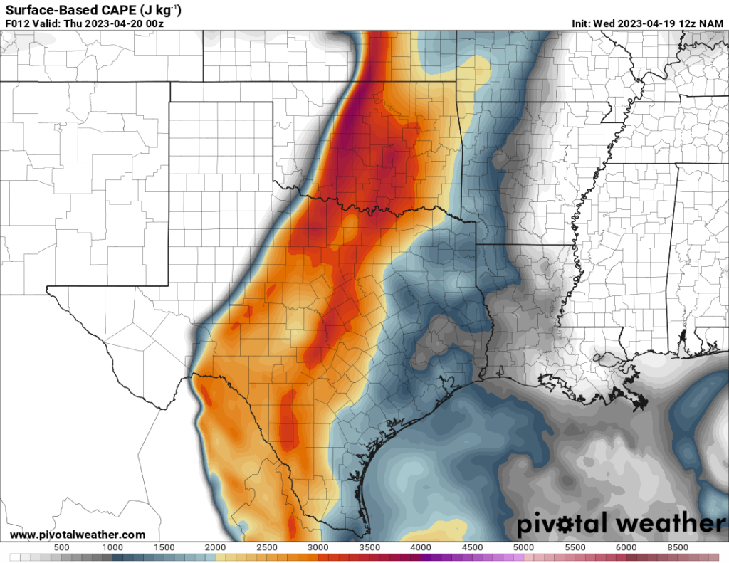 I woke up and took a look at the 12z NAM. A southwest/northeast oriented Dryline would be present with strong to extreme instability just east over the I-35 corridor in Central Oklahoma.