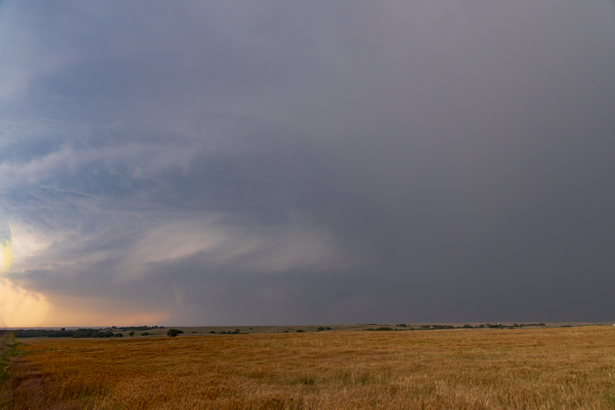 As I dropped south on highway 34, I was getting a good look at the structure of the storm. It was currently to my west, slowly drifting east. The bottom updraft had absolutely taken over and congealed into the main lone supercell in Western Oklahoma. The NWS slapped a tornado warning on it for awhile as I approached and setup ahead of the storm southwest of Butler next to Foss Lake.