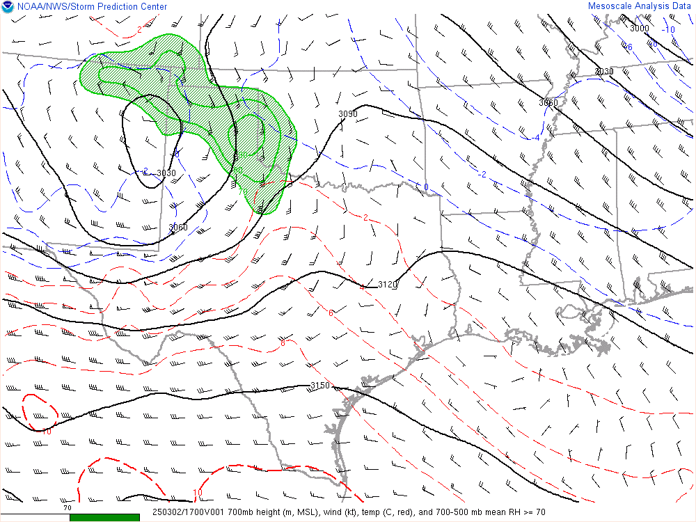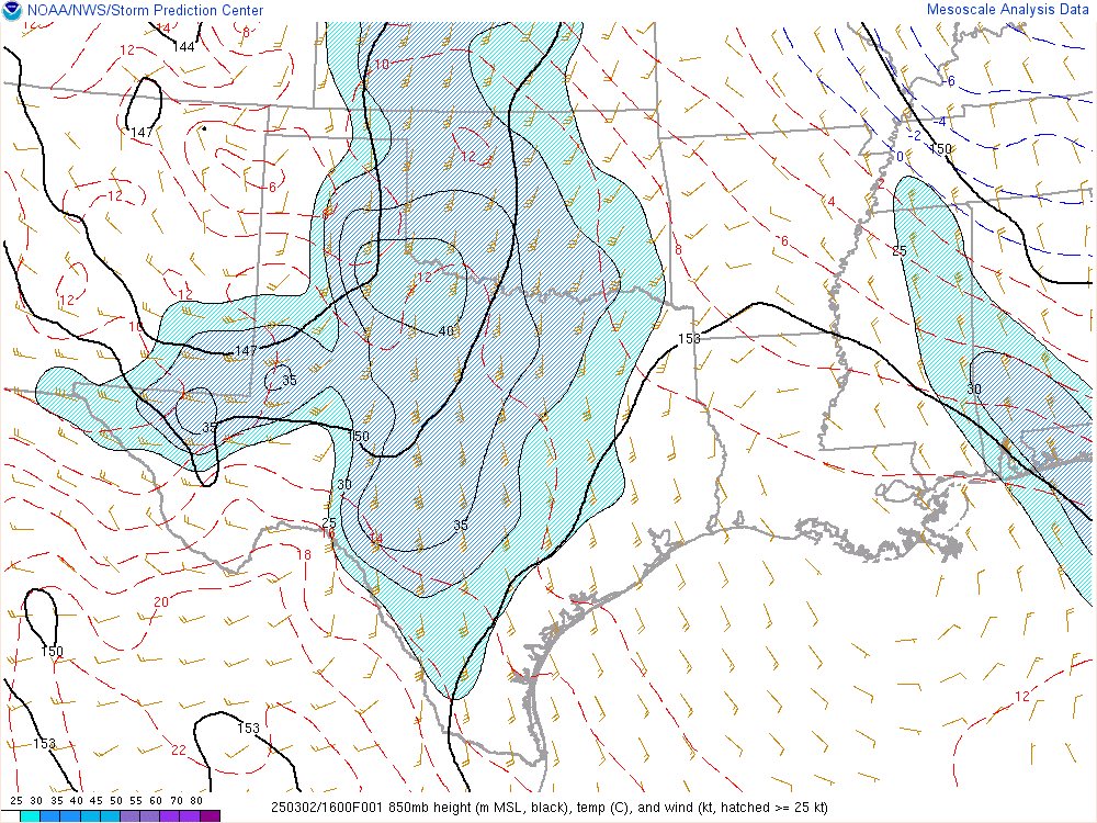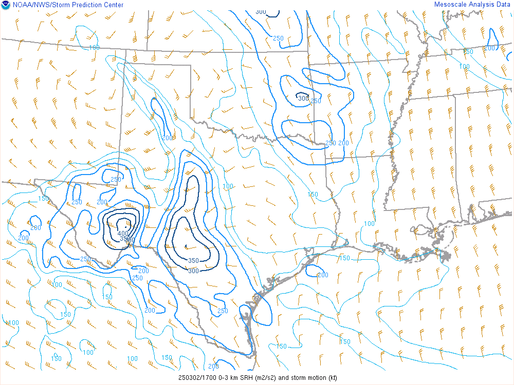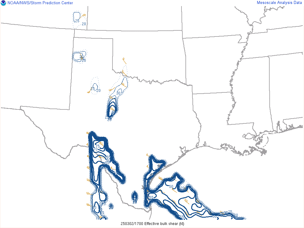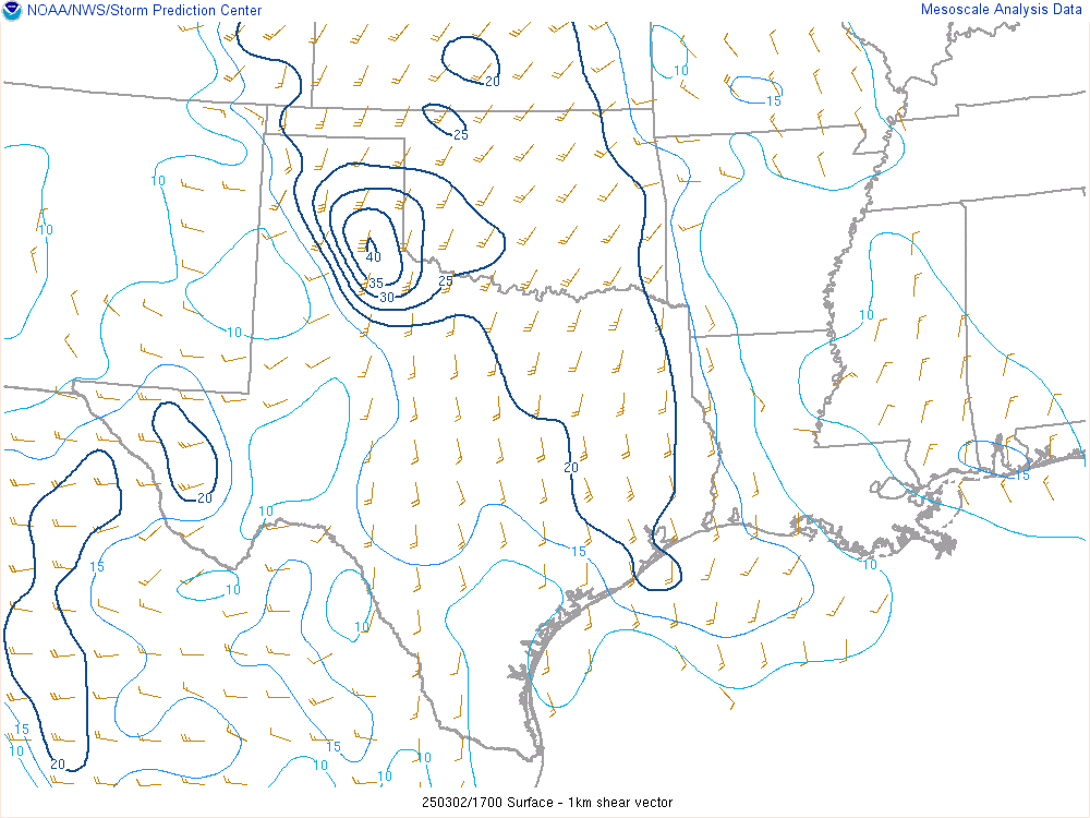 With an upper level low crashing into the panhandle, it would encounter mildly moist environment with dewpoints in the low 50s. Hail would definitely be the main threat, but storms would have some spin.