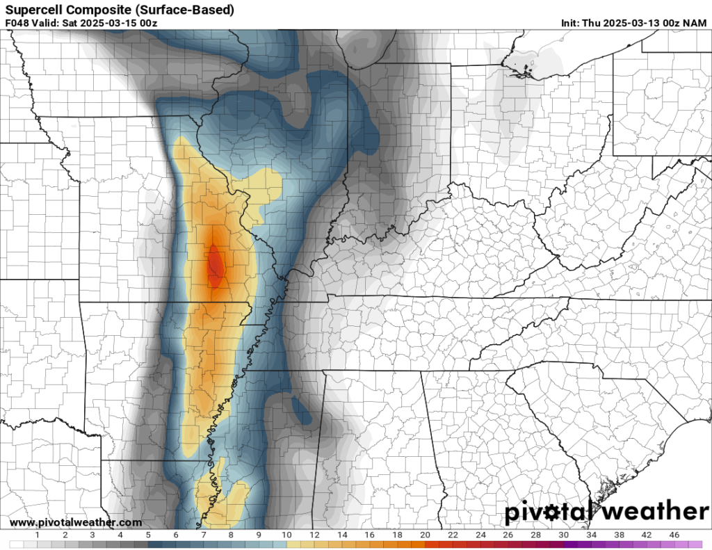A synoptically evident setup from a week and a half out. This day would live up to expectations, providing some violent tornadoes across the Northeast Arkansas region.