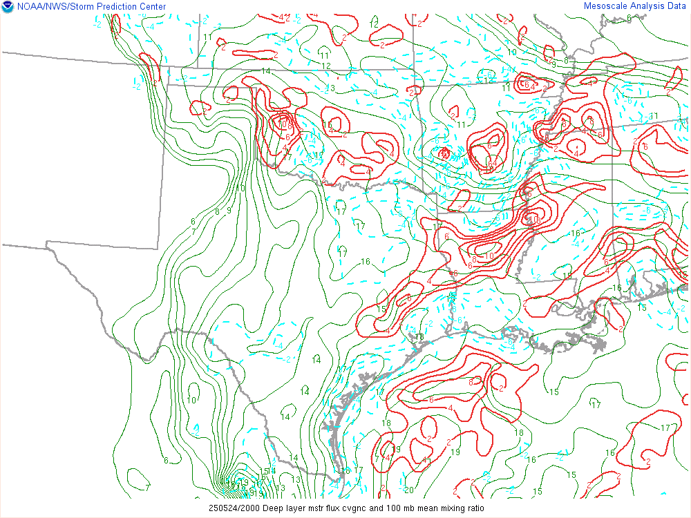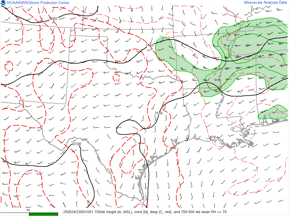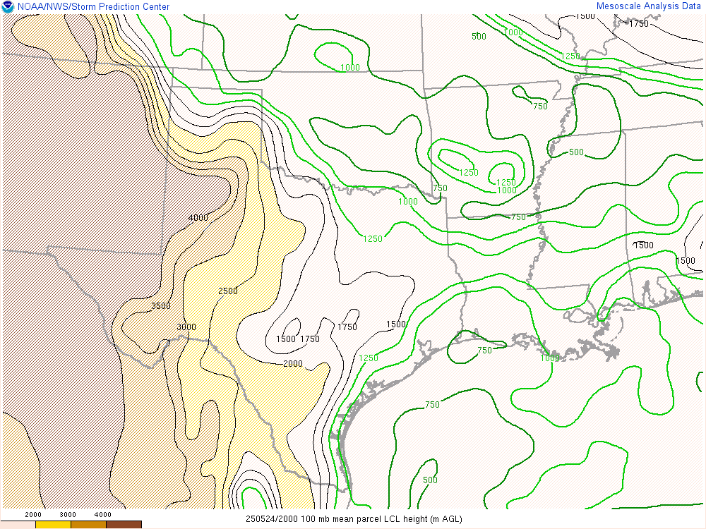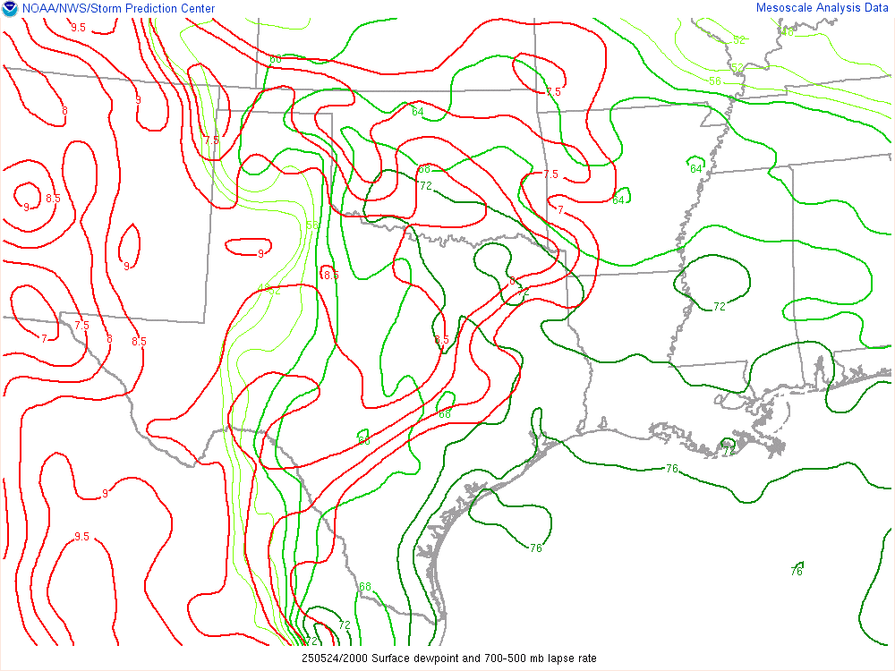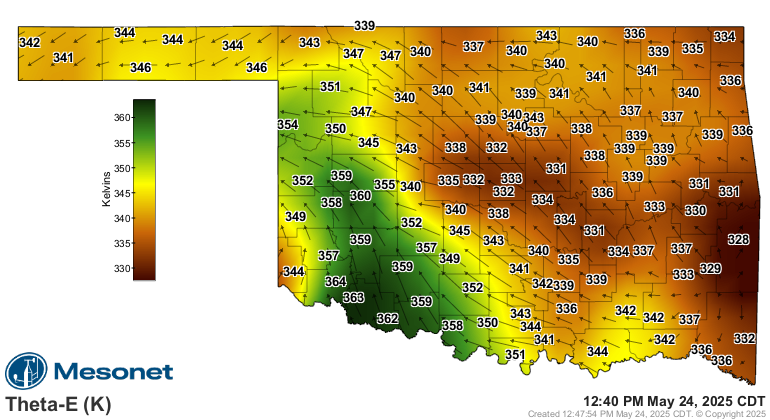 As afternoon fell, there was still a very pronounced area of moisture in Southwest and Western Oklahoma with a sharp gradient between the more stable/less moist air in Central Oklahoma/OKC Metro.