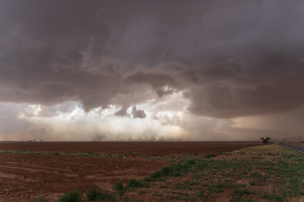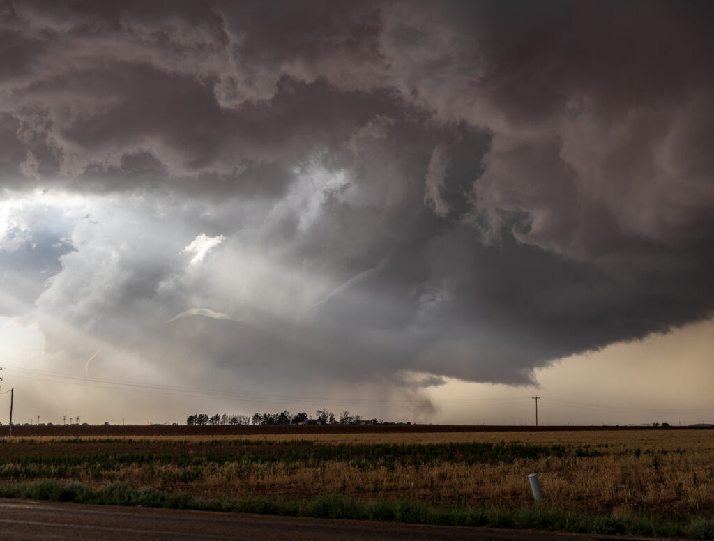 We headed east on FM211 from this intersection and headed over to US385 near Meadow. We’d make a short jog north and observe another tornado and very rapid motion in a wall cloud.