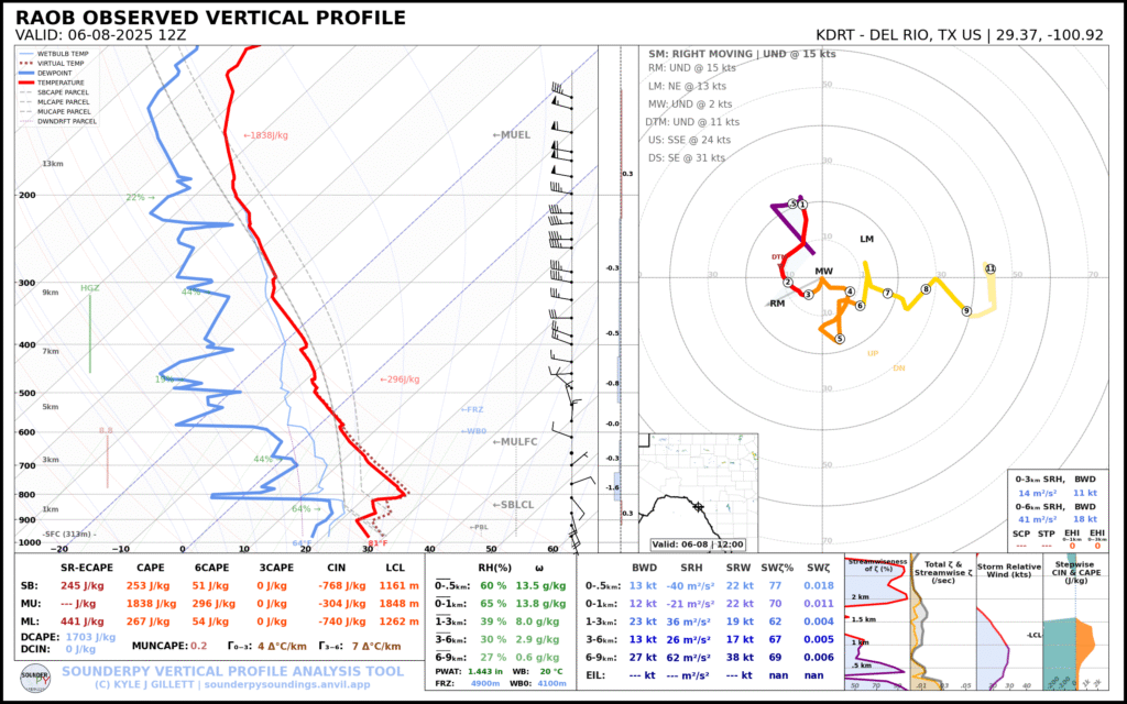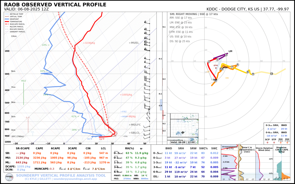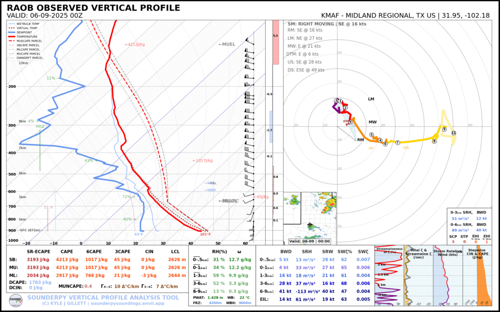 A very unstable atmosphere in place over the Texas panhandle with supercell shear. As it’s June, temperatures are a little high with RAP showing low 90 degree surface temps on the south side of the boundary with 70 degree dewpoints right up against the caprock.
