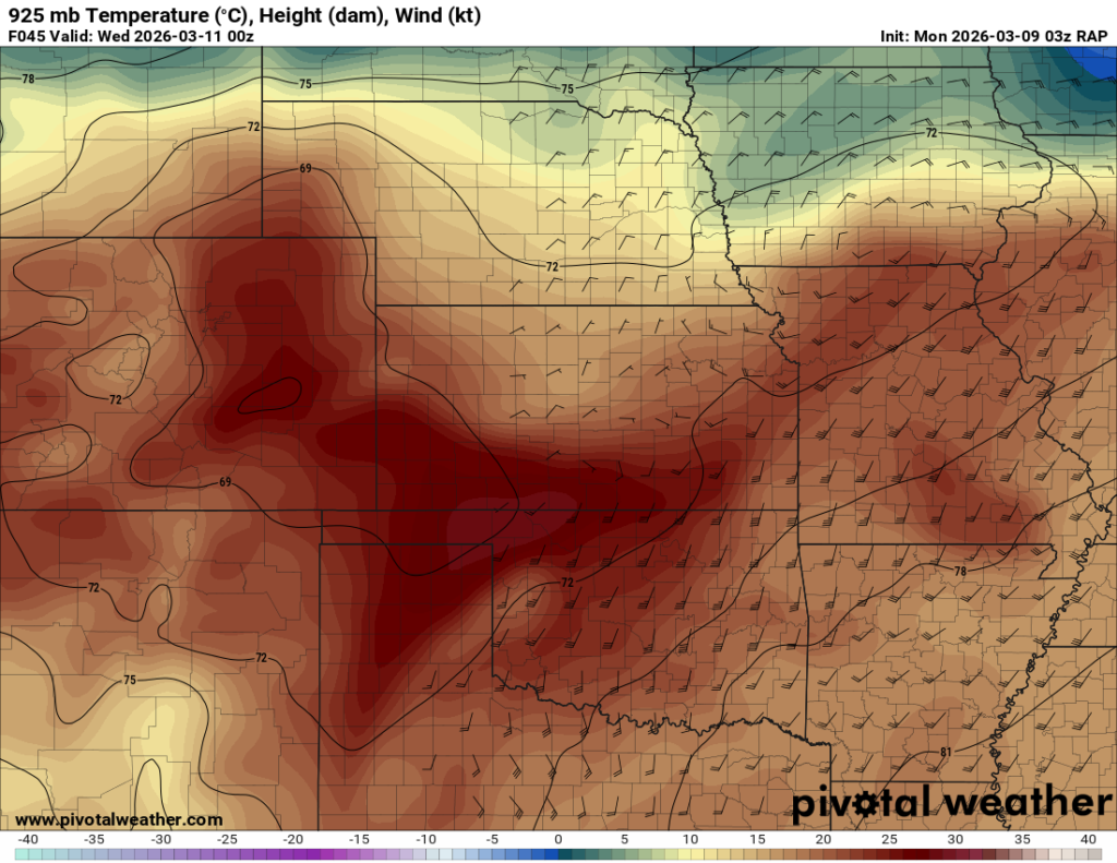 Moisture was very high for March. Dewpoints in the mid 60s were in place at 8am across the eastern 1/2 of Oklahoma.