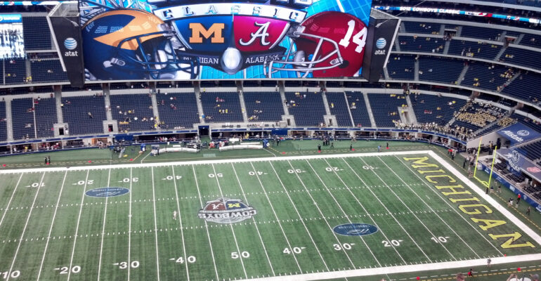 The 2022 Fiesta Bowl was held at State Farm Stadium in Glendale, Arizona on December 31, 2022 and featured Michigan vs TCU for the College Football Playoff